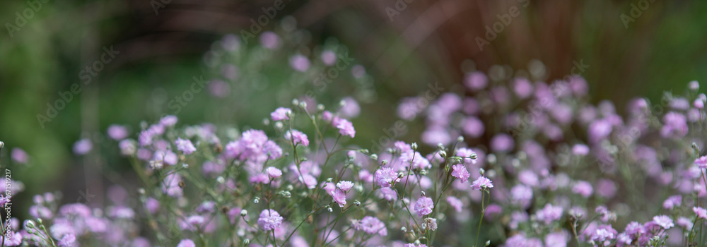 Flowers Gypsophila paniculata isolated on white. Border of pink small flowers baby's breath.
