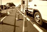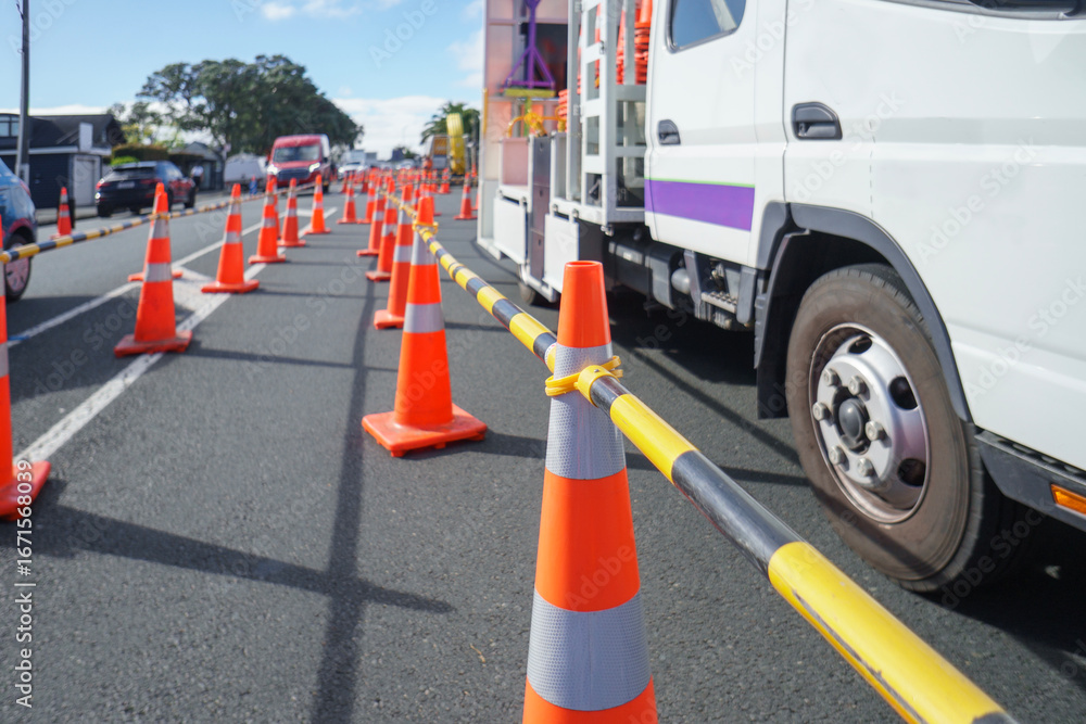 Work truck and traffic cones on the street. Roadworks in Auckland.
