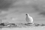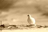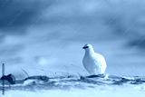 Rock Ptarmigan, Lagopus mutus, white bird sitting on snow, Norway. Cold winter, north of Europe. Wildlife scene in snow. White bird hidden in white habitat. Art view of nature. Hidden in snow.