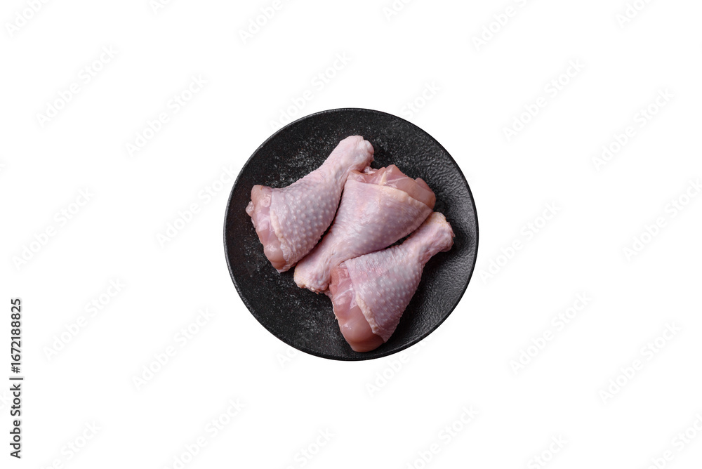 Raw chicken or turkey legs as a food background for cooking on a barbecue or grill. Chicken raw legs