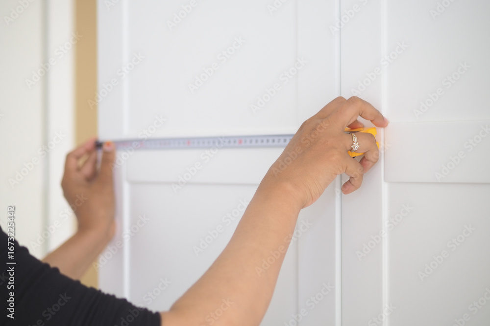 Measuring a cabinet for home improvement project