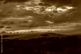 Sunset over Folkington hill on the south downs from Butts Brow east Sussex south east England UK