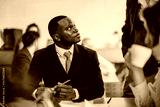 Group of business people engaged in a productive meeting within a cozy co working space with a rustic ambiance, discussing strategies while fostering collaboration.