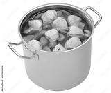 panela com caldo de galinha com legumes isolado em fundo transparente
