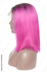 Straight black to pink red ombre style human hair weaves extensions lace bob wigs