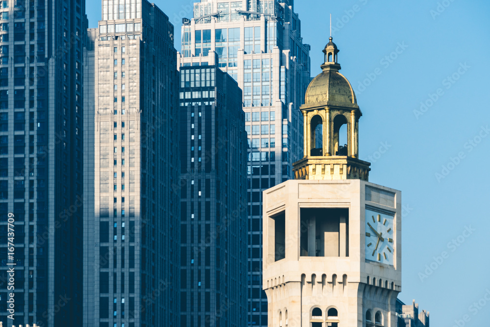 high section of highrise buildings against sky,tianjin,china.