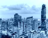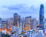 Bangkok financial district, business building and shopping mall center at Southeast Asia