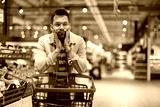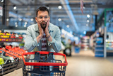 Man Shopping in a Grocery Store With a Thoughtful Expression