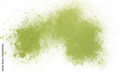 Young barley or wheat grass, green powder flying, isolated on white background, clipping path