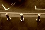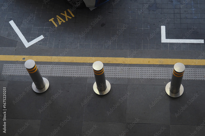 Taxi stand with bollards on urban street in daylight