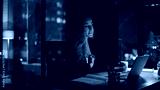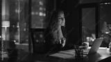 Night businesswoman taking coffee sip sitting office closeup. Woman laptop work