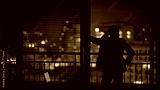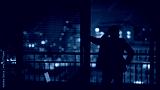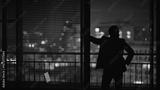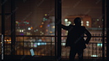 Ceo silhouette thinking future career at cityscape view. Man pondering evening