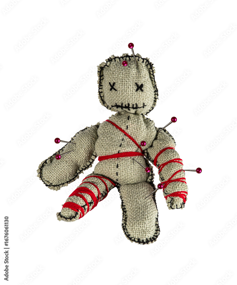 Homemade voodoo doll on isolated background. Magic toy for Halloween ritual, spells, revenge