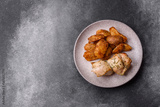 Potato wedges baked with spices, garlic and rosemary. Potato wedges