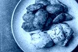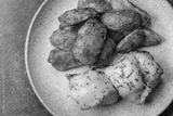 Potato wedges baked with spices, garlic and rosemary. Potato wedges
