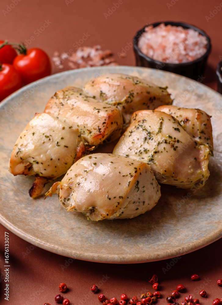 Chicken shish pieces fried on a skewer with salt and spices. Chicken shashlik