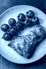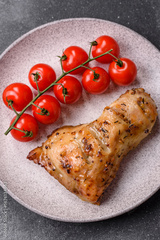 Chicken leg, quarter grilled with spices and rosemary. Chicken leg