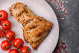 Chicken leg, quarter grilled with spices and rosemary. Chicken leg