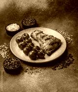 Chicken leg, quarter grilled with spices and rosemary. Chicken leg