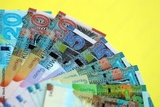 Kuwaiti dinar money bills in big amount on yellow. Finance and banking concept
