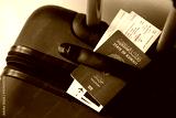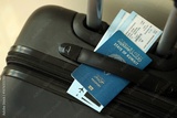 Kuwaiti passport and avia tickets on travel bag. The concept of travel and vacation