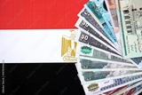 Egyptian pound currency money bills lies on flag. The concept of business and investment