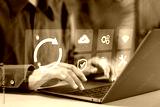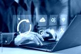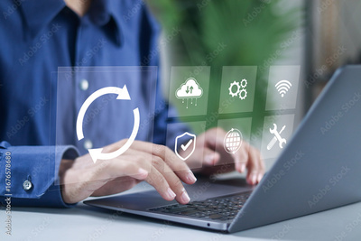 Person using laptop to update and upgrade system software for modernize, released new version and computer program upgrade business technology.