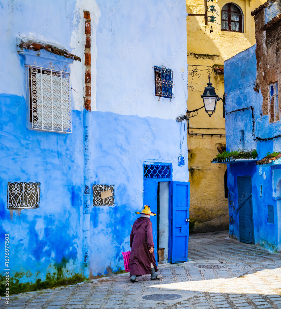 Amazing view of the street in the blue city of Chefchaouen. Location: Chefchaouen, Morocco, Africa. Artistic picture. Beauty world