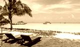 Amazing view of beautiful beach with palm trees, chaises and transparent turquoise water. A great place to relax. Ko Phi Phi Don island, Krabi province, Thailand, Andaman Sea. Artistic picture.