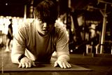 Overweight Man Holding Plank Position at Gym. Intense Core Strength Training