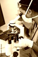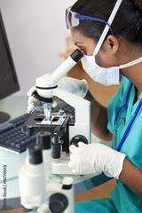 Asian Woman Doctor or Scientist Using a Microscope In Laboratory