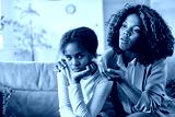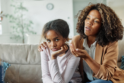 Mother with her teenage daughter at meeting with social worker, psychologist discussing mental health family sitting on sofa in psychotherapist office