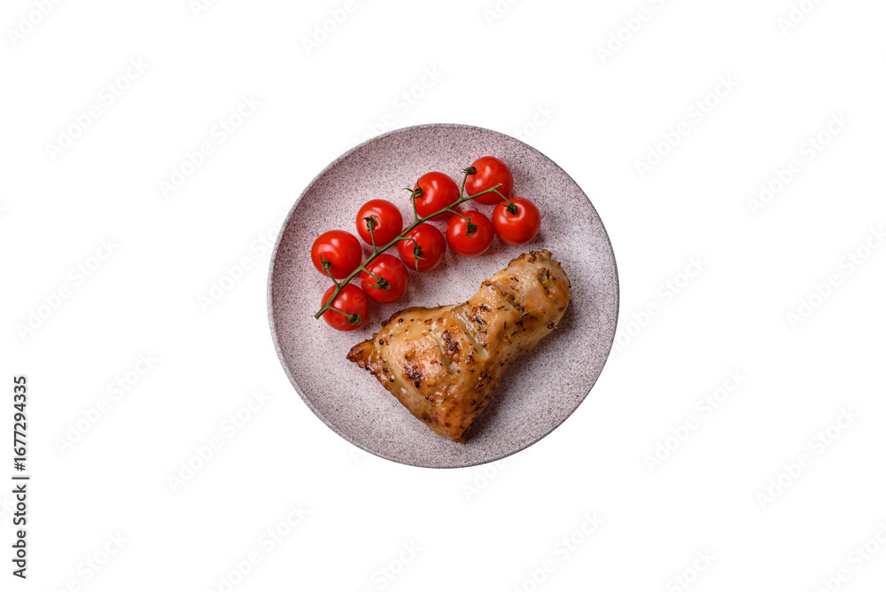Chicken leg, quarter grilled with spices and rosemary. Chicken leg