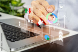 Business concept using advertising media and viewing online advertising rating data, working in communication and product advertising.
