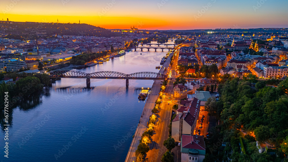 Sunset view of bridges at Vltava river in Prague, Czech republic