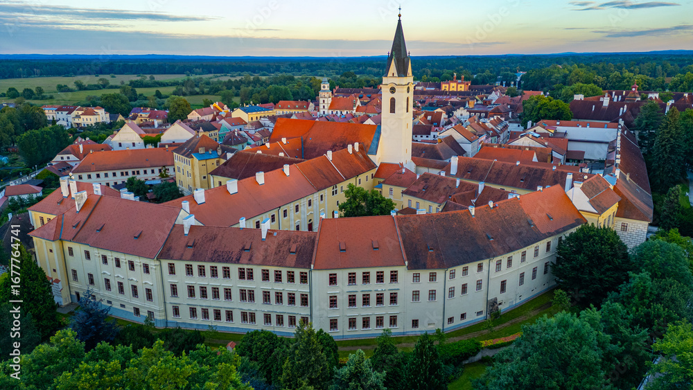 Sunset panorama view of Trebon, Czech republic
