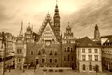 Sunrise view of town hall at Rynek, the picturesque square in ce
