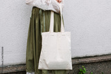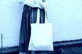 Young white woman holding black eco bag on arm shoulder or hand, street wall at background. city living female going on shopping to grocery store