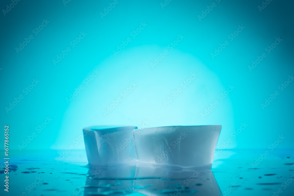 colored natural ice for podium background.real ice with texture for presentation of cosmetics perfumes drinks alcohol jewelry products