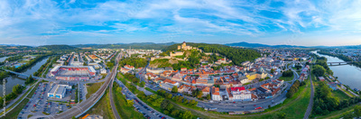 Sunset with Trencin castle overlooking the old town, Slovakia