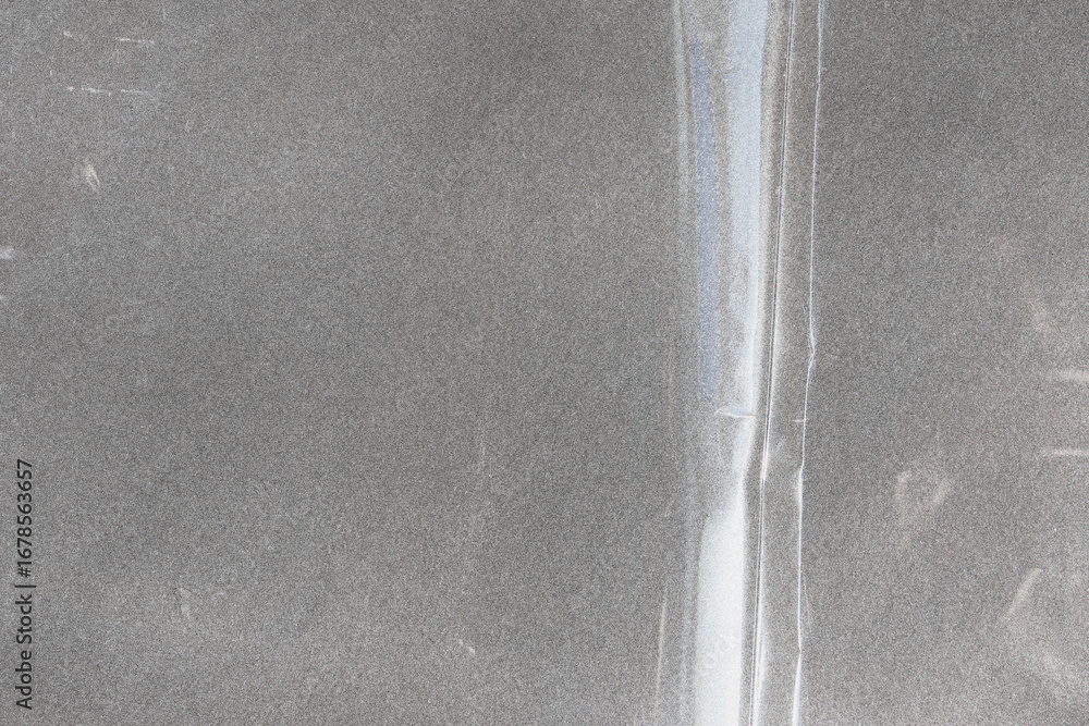 plastic transparent cellophane bag on white background. The texture looks blank and shiny. The plastic surface is wrinkly and tattered making abstract pattern