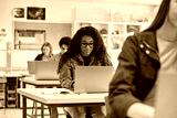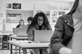 High school students using laptop during computer class