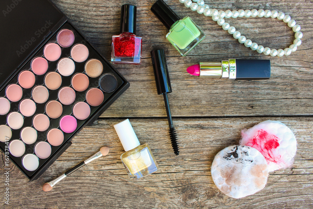 Cotton swabs to clean face with remnants of makeup. Top view.
