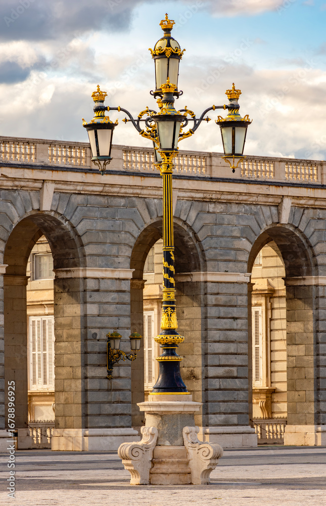 Street lamp in courtyard of Royal palace, Madrid, Spain