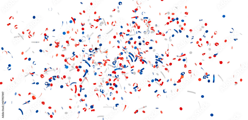 Festive confetti explosion in red, white, and blue. Perfect for celebrations and holidays.