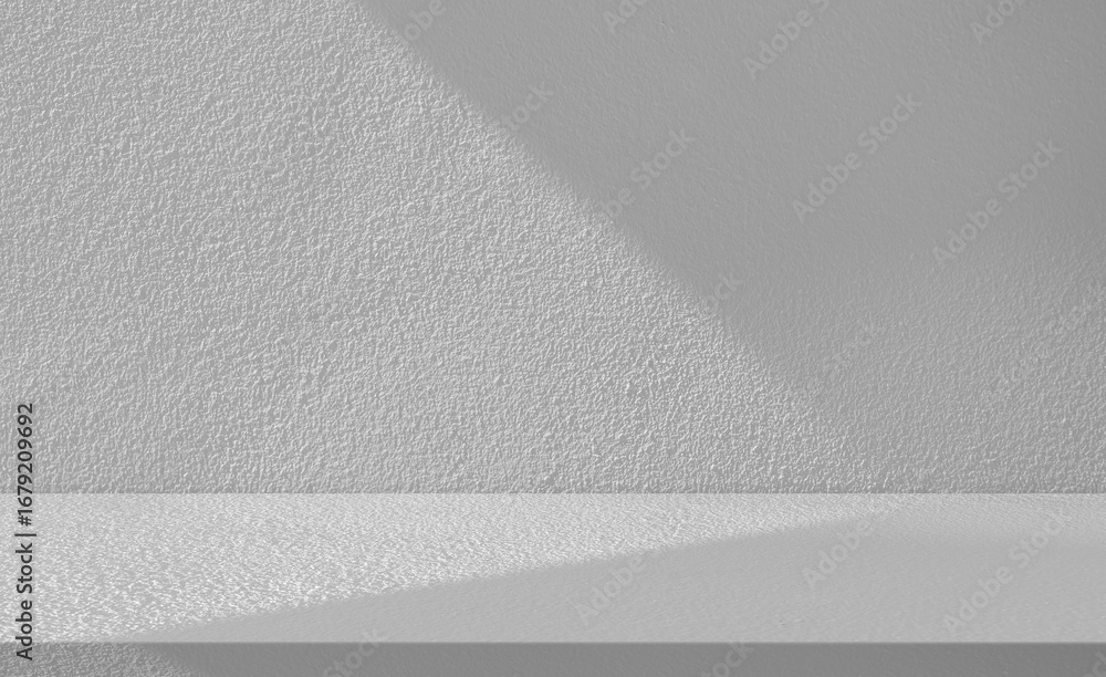 Podium White Background, Wall Studio Kitchen and Shadow,Light on Grey surface Desk,Empty wall room concrete Texture Top Shelf Countertop for Cosmetic Product, Blank backdrop display With Sunlight