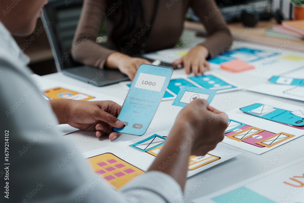 User experience designers are working on a new mobile application, placing different user interface elements on the screen