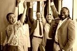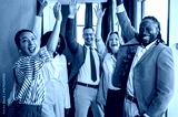 Portrait of diverse group of business people in modern workplace looking at camera.