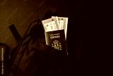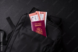 Passport Spain, visa for travel, document with tickets in travel bag. Spanish passport