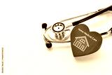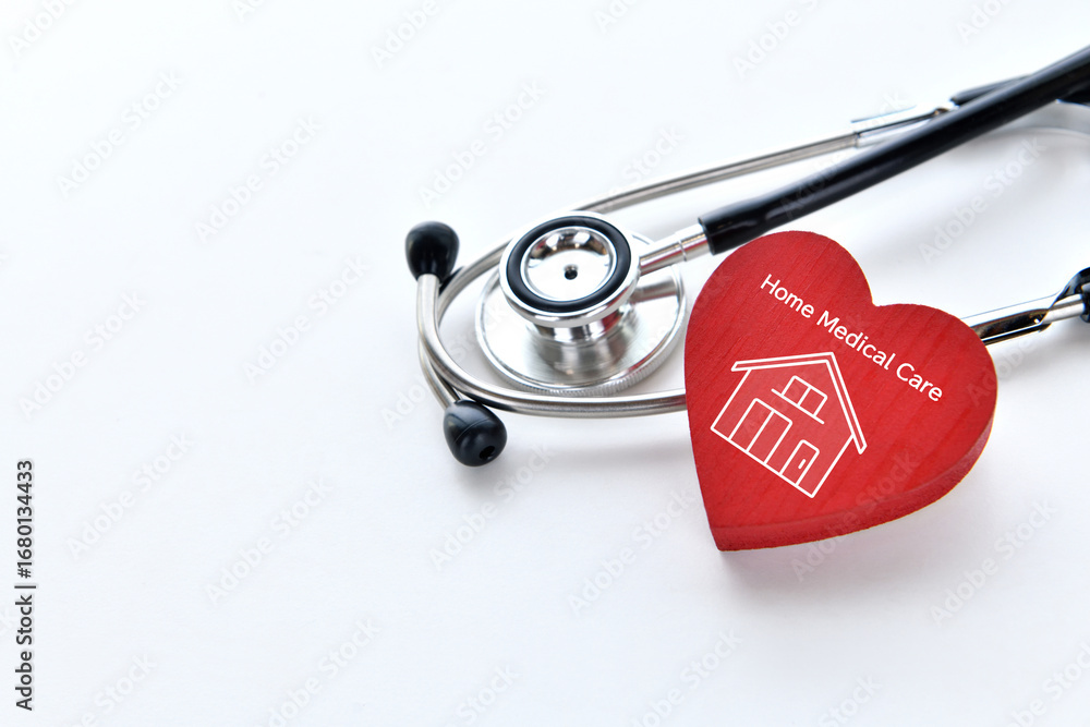 在宅医療イメージ―住宅のアイコンが記されたハートのオブジェクトと聴診器